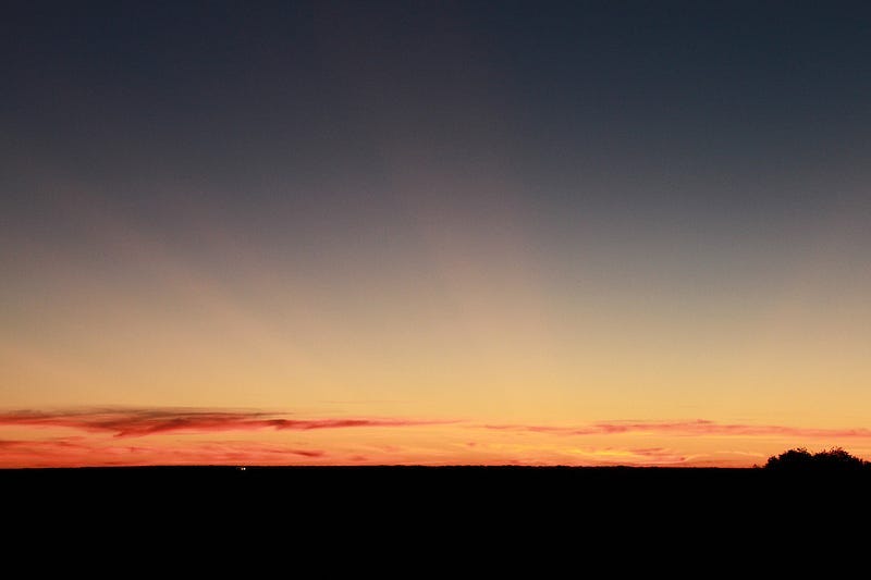 We cooked dinner as the sun went down, and the last embers of the day had died by the time we sat down to eat. As we did so, I noticed a pair of lights glimmering on the horizon, unmoving.