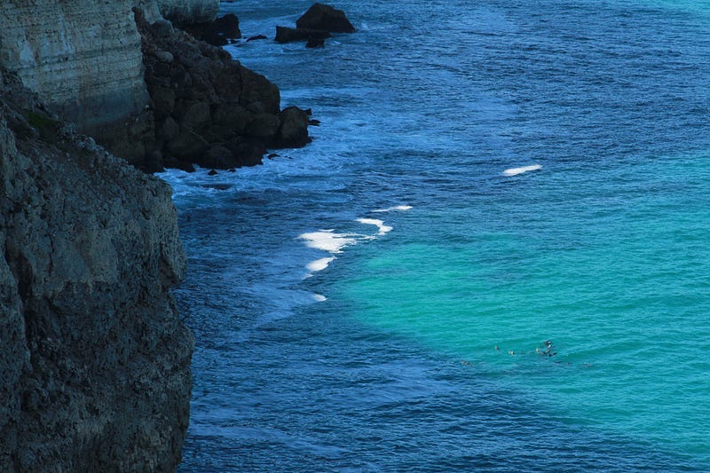 But nowhere are these angles more apparent than at the Nullarbor’s southern edge where, after untold miles of happy horizontalness, the land decides to change tack and plunge vertically into the ocean. They begin at the awkwardly-named Head of Bight, which is the northernmost reach of the Great Australian Bight.